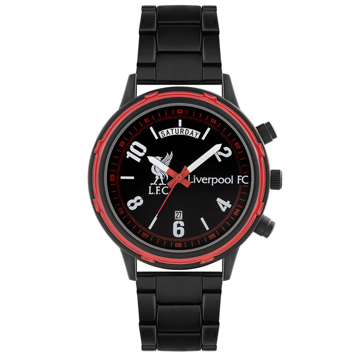 Featuring a white LFC Liverbird on the watch face and the day of the week in white at 12 o'clock