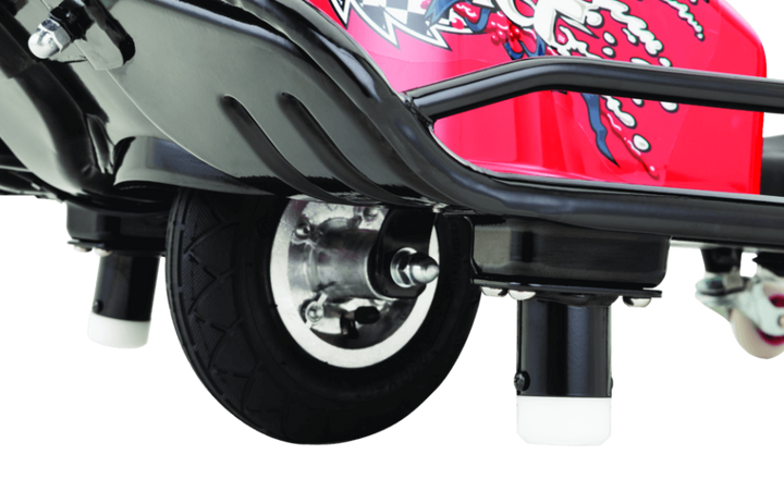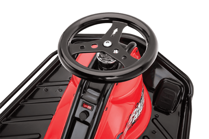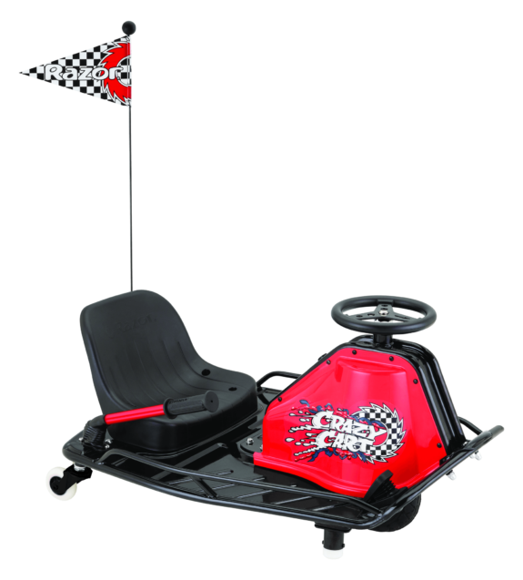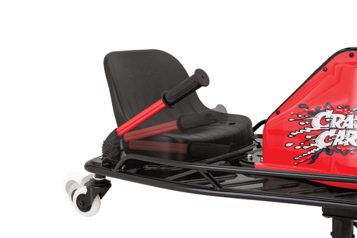 The Razor Crazy Cart Red/Black 24 Volt is the ultimate machine for adrenaline-fueled drifting and high-speed fun. Designed to keep you grinning like crazy, it offers up to 40 minutes of uninterrupted excitement with a powerful 250W variable speed, high-torque chain-driven motor that propels you up to 12 mph (19 km/h).