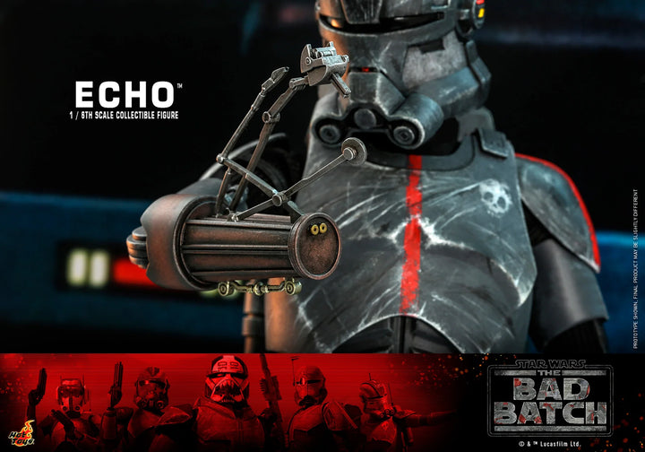 The highly accurate collectible figure features skilfully crafted and finely detailed recreation of Echo’s armour and helmet, interchangeable head sculpt with great likeness, the character’s unique cybernetic parts including a variety of interchangeable mechanical right arms, a military backpack, blaster, and a display base!