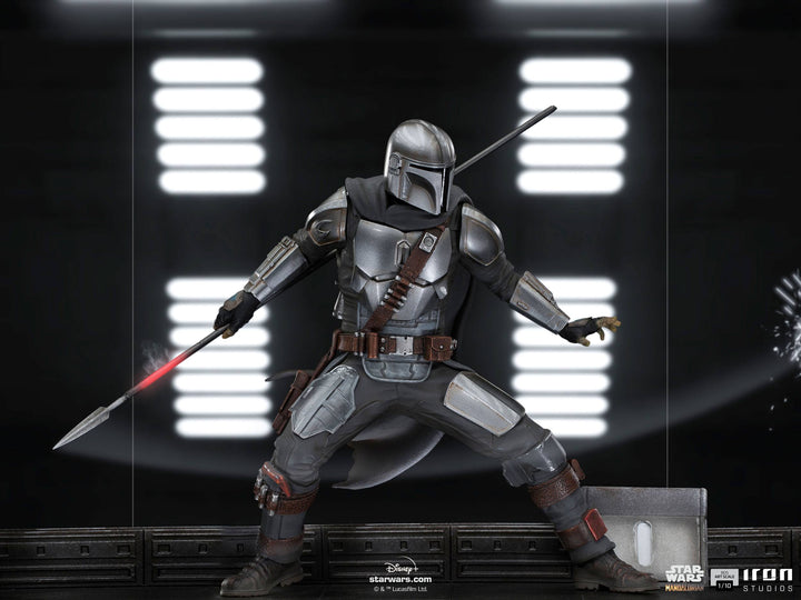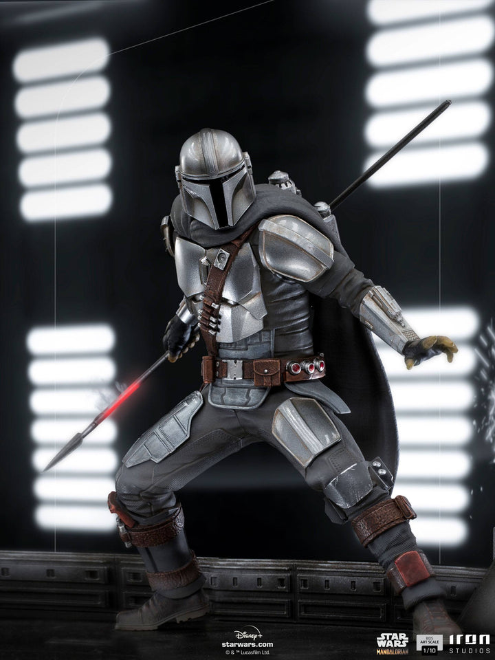 This statue was inspired by the last scene from the final episode of the 2nd season of the Mandalorian series, a spin-off from Star Wars and created by Jon Favreau, available on Disney+ streaming. In this scene, the protagonist hero fights a decisive duel against Moff Gideon, an intelligence officer from the fallen Galactic Empire. Thus, Iron Studios presents its "Mandalorian BDS Art Scale 1/10 - The Mandalorian - Iron Studios".