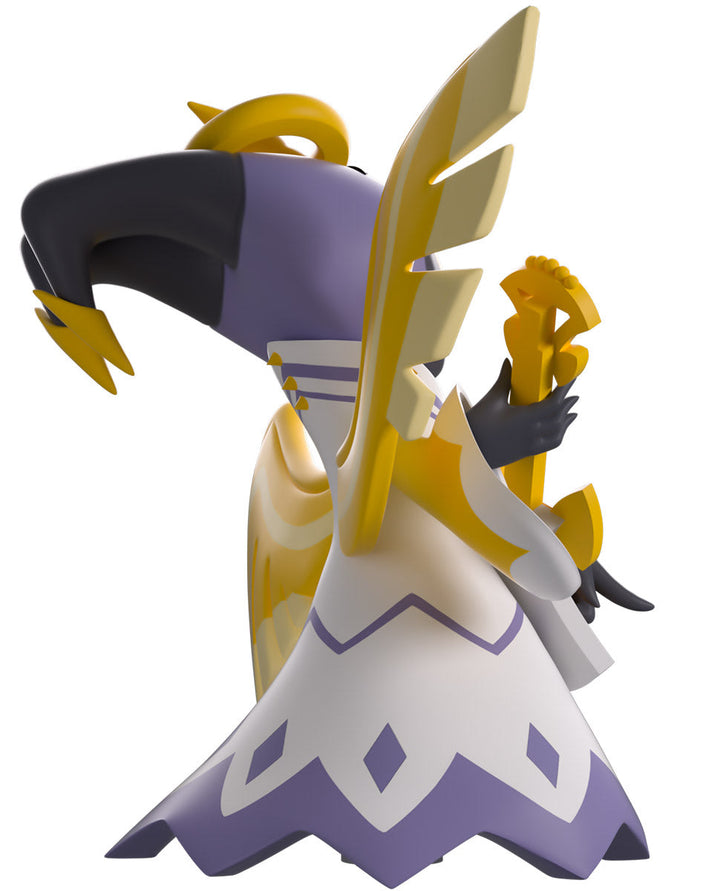 Adam’s flown down from the skies to unleash his very own form of exorcism with his Youtooz debut! Standing at 5.2 inches tall as he blasts a vicious note from the golden harp-guitar held in his hands, a deep yellow toothy smile curls across his black face underneath matching eyes as long horns stretch out behind his head and bend downwards. With a white halo atop his purple head and a pair of golden wings extending from his shoulders, he wears a long white cloak with a jagged purple pattern and flowing sleeves as short spikes line the collar. The exterior of his packaging looks onto the golden gates of Heaven, while the interior is covered in hazy pastel clouds. The protective sleeve then shows off the city’s silhouette with deep red lights shining from the buildings as his figure can be seen through the large, clear window at the packaging’s front. This collectible ships in a matte, embossed, protective outer sleeve and a custom-sized plastic protector for maximum protection during shipping.