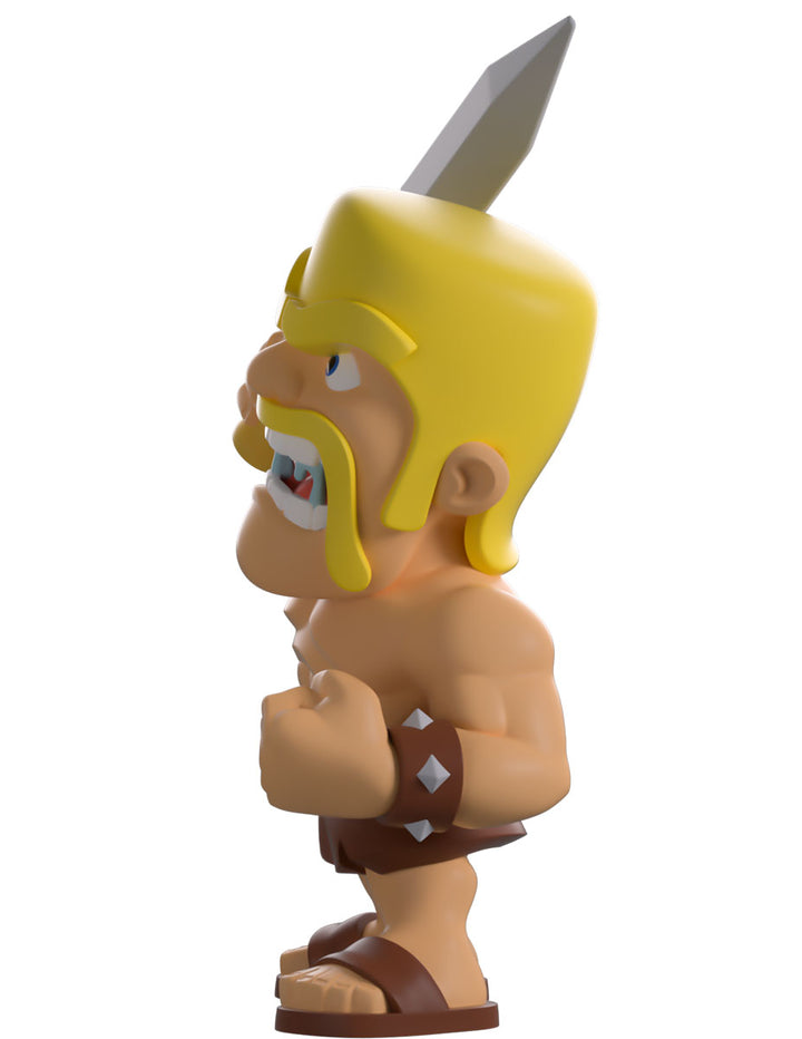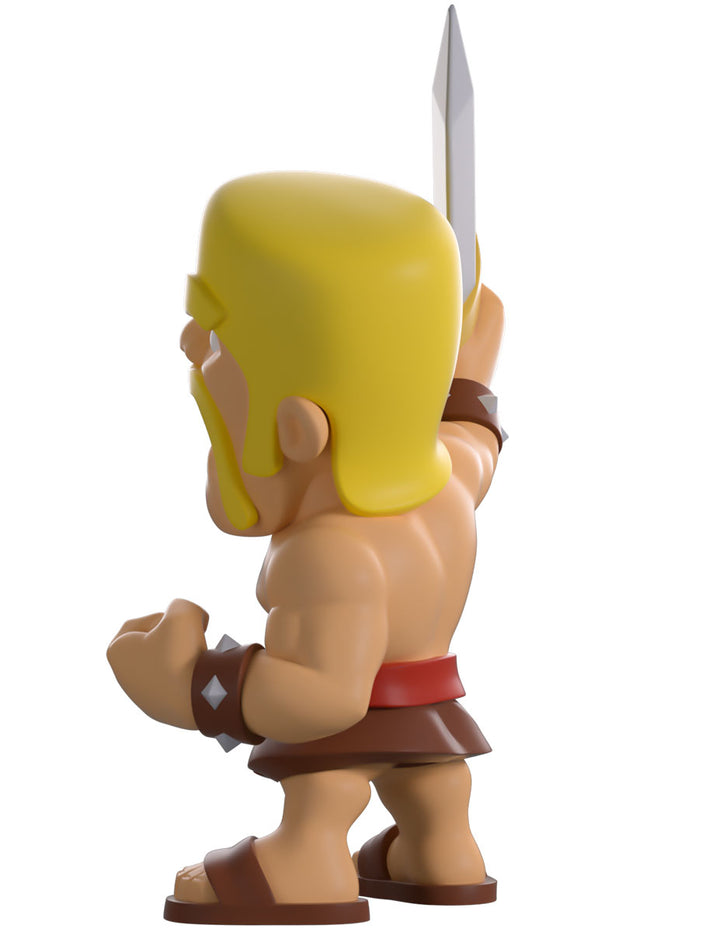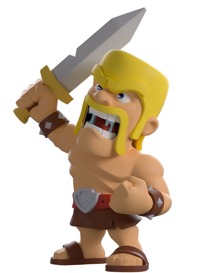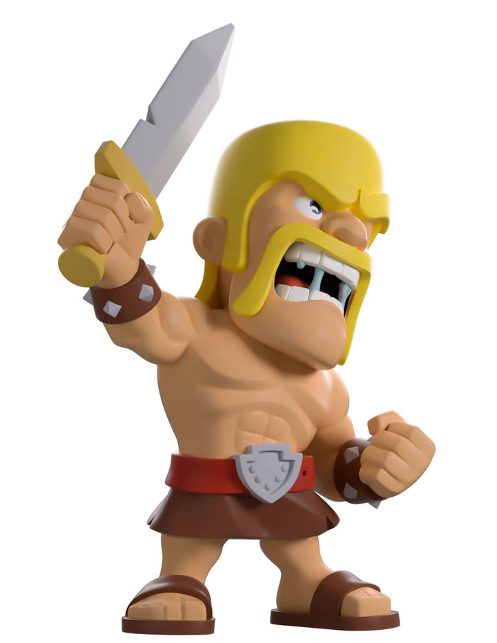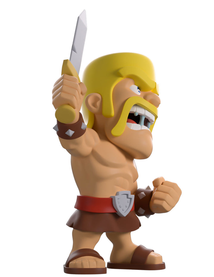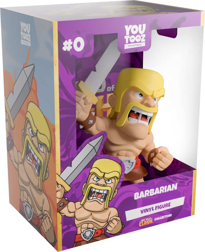 AAAAAHHHHHH!!! That’s right, this Barbarian isn’t just standing there; he’s mid-battle cry, and he’s not stopping anytime soon! Thankfully he is not here to destroy your village, just to be added to your collection! This brand-new Youtooz collectible figure is 4.9 inches tall and is made to look like the iconic Barbarian from The World of Clash. He is standing in a wide stance, with brown sandals that match his brown skirt, held up by a red belt and grey buckle. His left arm is held at waist level with a clenched fist as his right arm is up holding a sword in the air. His yellow hair and stache frames his yelling face, which is dripping with saliva. The windowed display box has been illustrated to showcase many barbarians in the midst of battle on a grassy field. The interior of the box and the protective sleeve have a purple design of notable characters from The World of Clash. This collectible ships in a matte, embossed, protective outer sleeve and a custom-sized plastic protector for maximum protection during shipping.