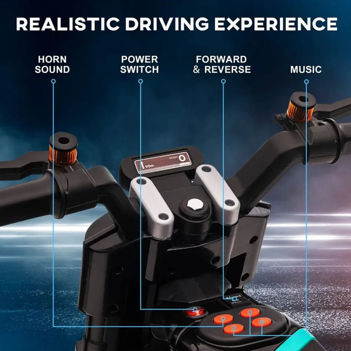 Battery powered: When charged for 8-12 hours, this electric motorbike can go up to 3km/h - slightly slower than walking speed. Two training wheels: For beginners, these stabilisers will keep them balanced when riding. Once confident, the training wheels can be removed from this kids electric bike. High-traction wheels: Extra wide tyres keep the ride safe and smooth, even through puddles. Realistic features: This kids electric motorbike includes a working horn, siren and music, whilst the headlights keep them safe and visible. Dimensions: 58cm (H) x 86cm (L) x 44cm (W). Recommended age: 37-60 months. Maximum load 25kg. Assembly required.