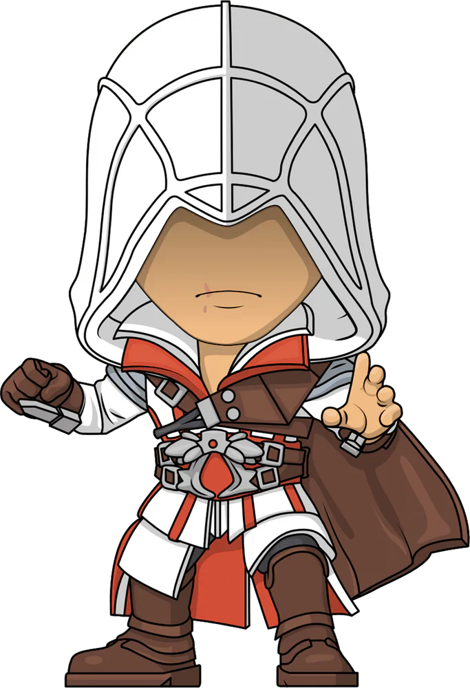 Is Ezio’s next target Youtooz? Surely that’s not why he’s made his debut! At 4.5 inches tall with an intricate hood pulled down over their mysterious face to reveal only his scarred pursing lips, he’s posed raising both arms and preparing to strike with two hidden blades extending out from his wrists. With red and white collars fanning out from his neck as a segmented cloak falls down to cover his arms and legs, his billowing brown shoulder cape flows in the breeze and is strapped around his chest. An intricate belt sits at his waist and is held in place with two brown belts that match his gloved right hand, blade cover and thick strapped boots. The exterior of his packaging sits you atop the town's tallest buildings looking out over a sunny countryside. While the interior is a stark white with the Assassin’s Creed logo printed in red at its back and the protective sleeve fades red to white from top to bottom. This collectible ships in a matte, embossed, protective outer sleeve and a custom sized plastic protector for maximum protection during shipping.