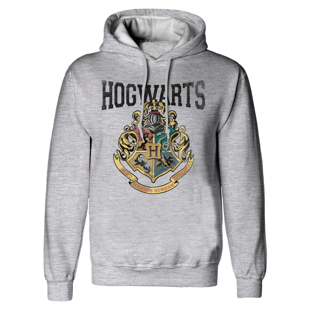 Officially Licensed Harry Potter merchandise. This hood features an iconic design, printed on a 50% cotton / 50% polyester heather grey, unisex pocket-less pullover hoodie