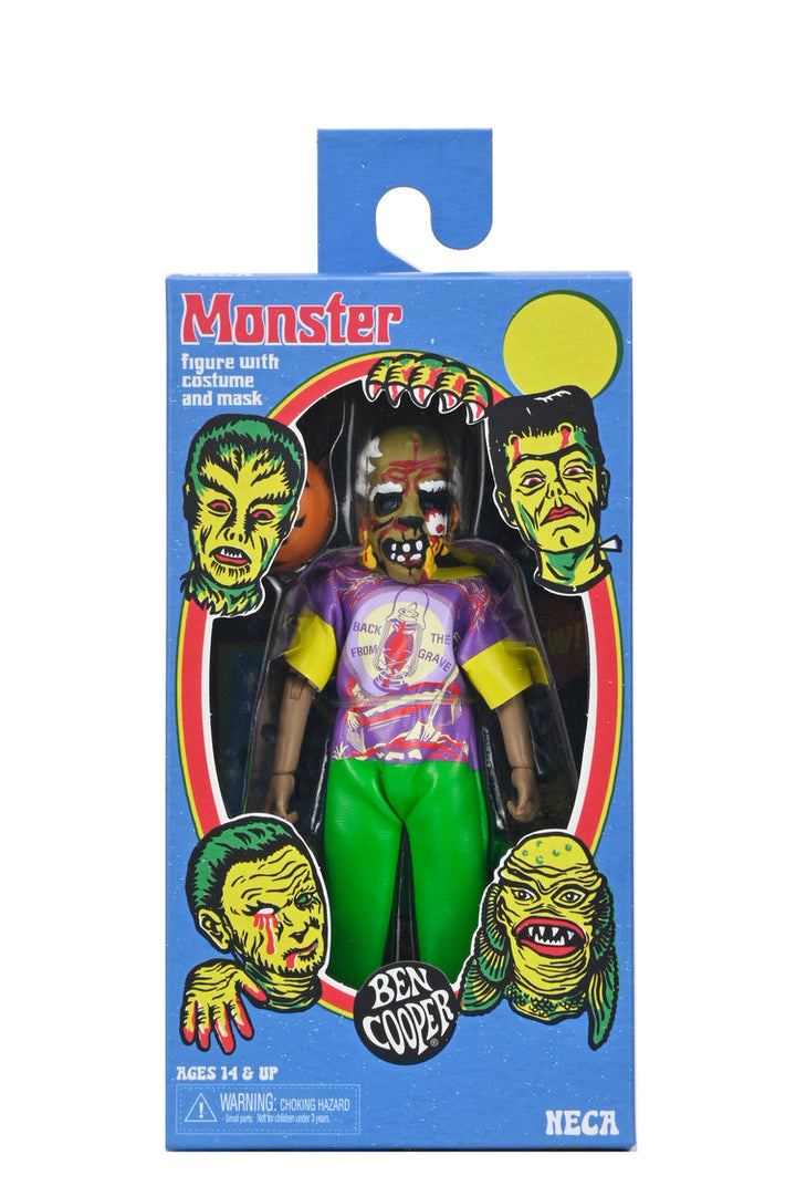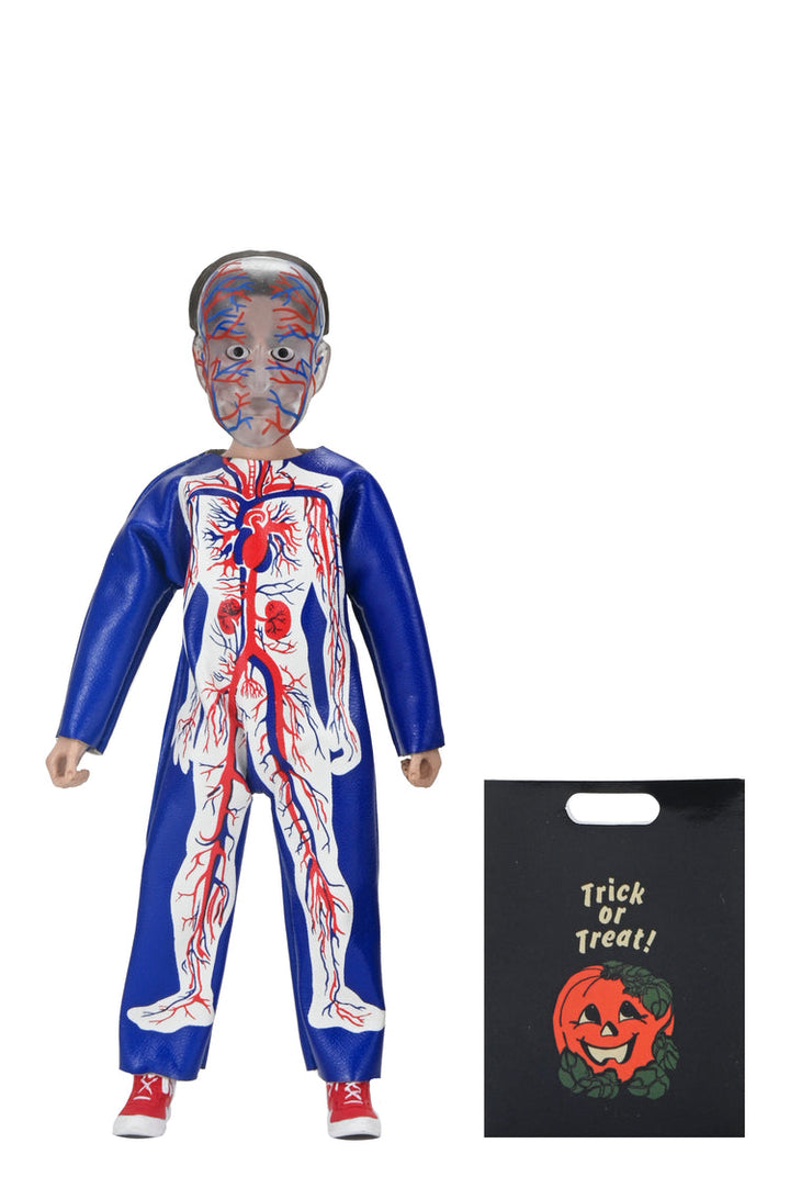 NECA proudly presents Series 6 of the Ben Cooper Costume Kids Collection, showcasing iconic costumes from Ben Cooper and Collegeville. This set features all-new trick-or-treaters inspired by licensed kids’ costumes from two of the biggest Halloween costume makers from the 1950s to the ’80s. Each approximately 6-inch tall, fully poseable figure includes Clown, Metaluna Mutant, Spooky Monster, Visible Man, and Wolfman. They wear masks true to their original designs and soft goods clothing that mimics the classic vinyl look. Each figure comes with a trick-or-treat bag or pumpkin bucket and is packaged individually in a numbered, retro-style window box honoring the original costume packaging.