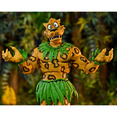 This 7” scale action figure from NECA’s “Ultimates” line brings Jagwar from the Teenage Mutant Ninja Turtles Adventures comic series to life with impressive detail. Inspired by Eastman and Laird’s Archie Comics, Jagwar is depicted as the fierce protector of the rainforest, equipped with an extra head, additional hands, a bowl of fruit, campfire, and baby Jagwar. Perfect for collectors, it arrives in a window box featuring exclusive artwork by Ken Mitchroney and Gary Fields. Own a piece of TMNT history with this officially licensed, highly detailed figure.