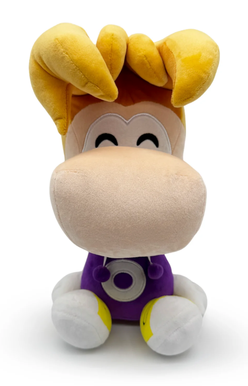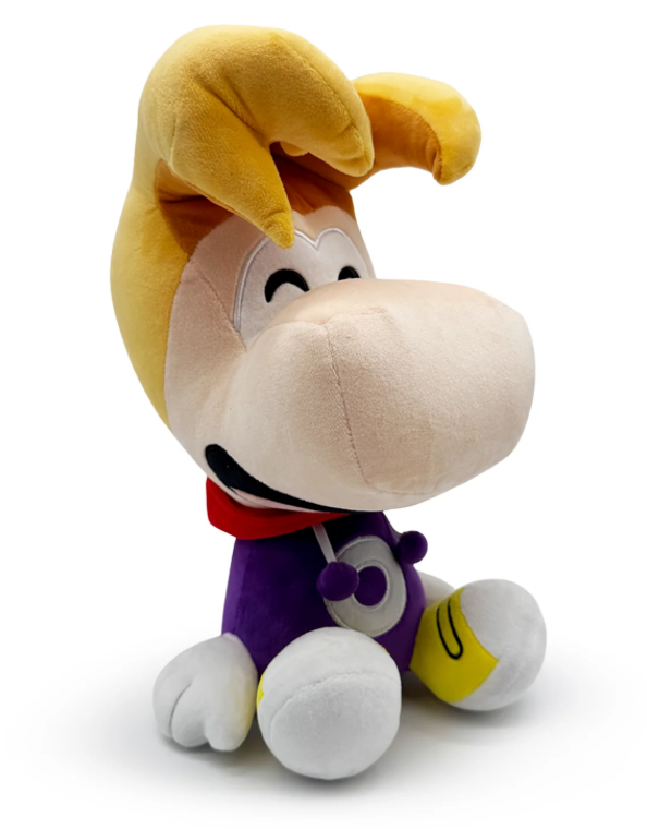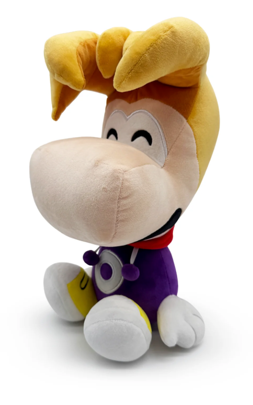Rayman has returned to Youtooz for a plush debut this time! Sitting at 9 inches tall and wearing his iconic costume with his white and yellow sneakered feet relaxing in front of him. His torso is covered in a purple hoody with a red hood and a white circle on his chest and his white-gloved hands rest with their palms on the ground at either side. With a joyous smile that seems to just dance across his face underneath a huge nose, his delighted connected eyes sit underneath a giant orange fringe which parts in the middle. This plush was designed in collaboration with @Ms_Ice_Cream, it is packed to the seams with 100% PP cotton and is made of the softest minky material, perfect for cuddling or collecting Teensies with!