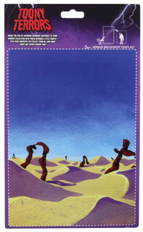 Bring the fun of Saturday morning cartoons to your horror collection with the adorable little creeps of Toony Terrors! Beetlejuice stands approximately 6 inches tall and includes knife accessory. Collect them all and make every day Toony Terror Time! Comes in blister card packaging with bonus cutout backdrop.