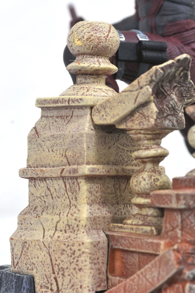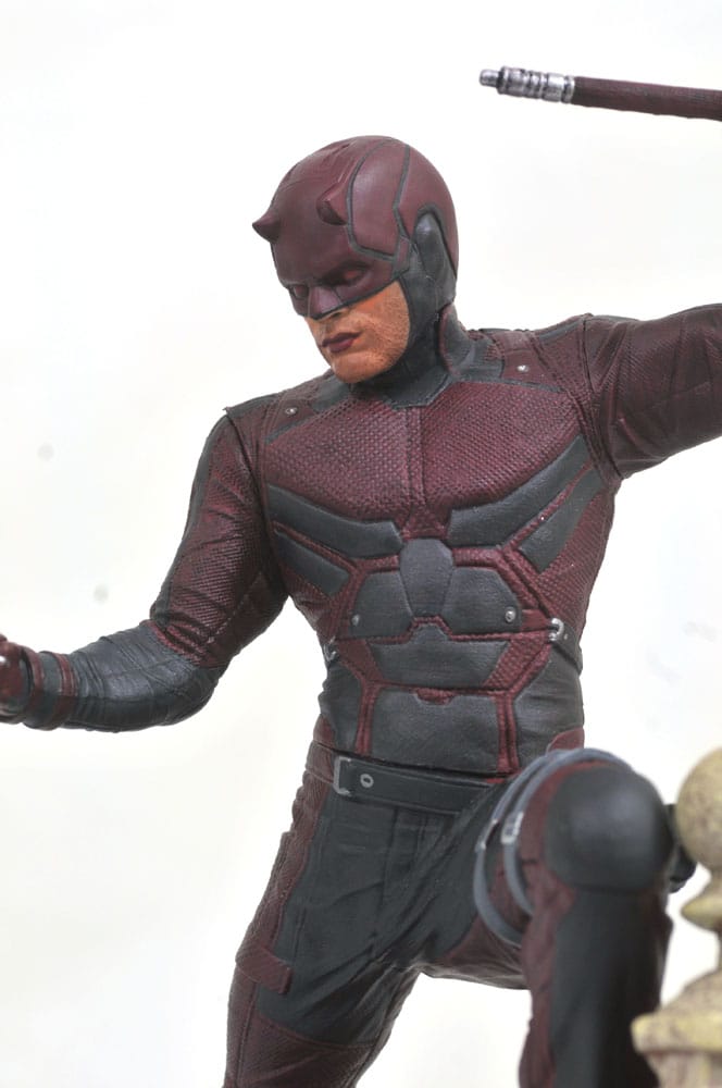 Matt Murdock returns in this classic Gallery Diorama inspired by the Daredevil TV series! Wielding his twin batons, Daredevil stands approximately 9" tall and features detailed sculpting and paint applications. Made of high-quality PVC, it comes packaged in a full-color window box. Designed by Nelson X. Asencio, sculpted by Rocco Tartamella.