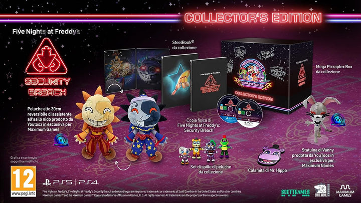 THE NEXT CHAPTER IN FEAR - Five Nights at Freddy’s: Security Breach is the latest instalment of the family-friendly horror games loved by millions of players from all over the globe. Play as Gregory, a young boy trapped overnight in Freddy Fazbear’s Mega Pizzaplex. With the help of Freddy Fazbear himself, Gregory must survive the near-unstoppable hunt of reimagined Five Nights at Freddy’s characters - as well as new, horrific threats.