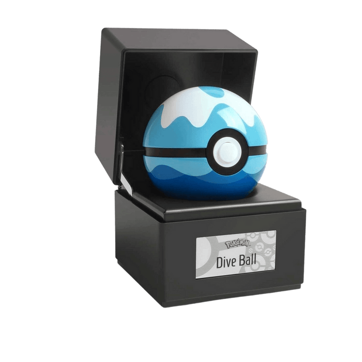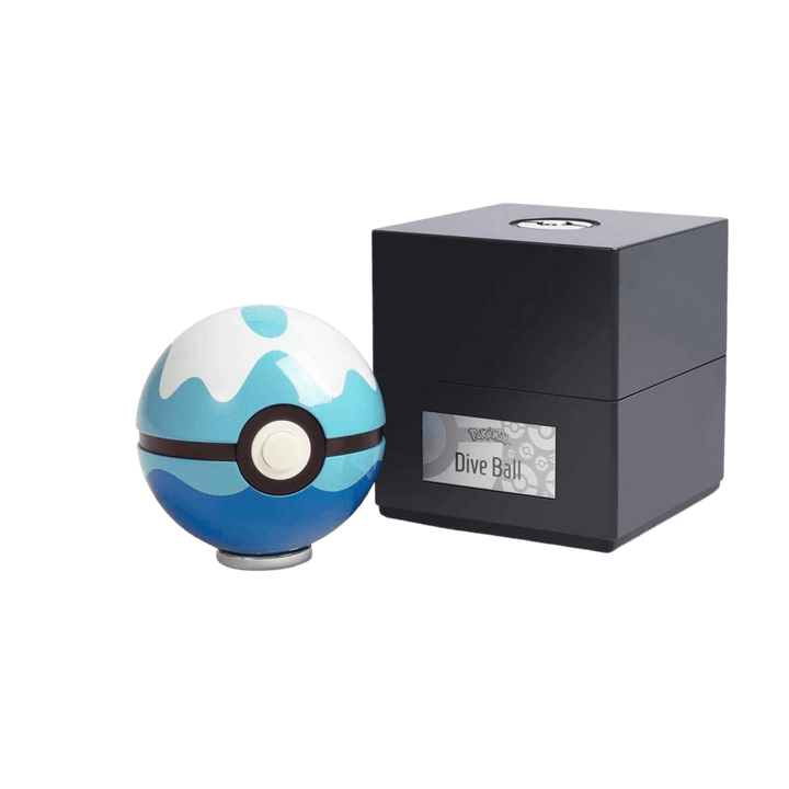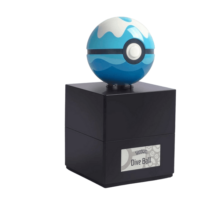 Introduced in the Hoenn region in the Pokémon Ruby and Pokémon Sapphire video games, the Dive Ball is a unique type of Poké Ball that makes it easier to catch Pokémon when surfing, fishing, or diving underwater. Now this useful item for Pokémon Trainers can be yours as a premium-quality replica from The Wand Company! Featuring touch- and proximity-sensing technology, the front button illuminates in response to nearby motion and becomes brighter when the Dive Ball is touched. For an extra touch of interactivity, pressing the button initiates a Pokémon-catching light sequence. This die-cast metal replica comes with an illuminated display case featuring the Pokémon logo, along with a display ring that lets you show off the Dive Ball on its own.