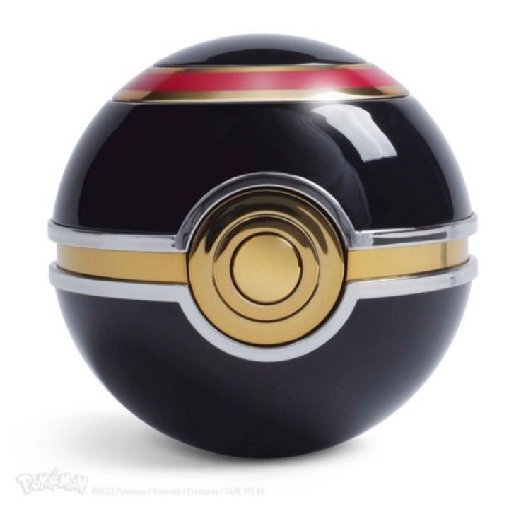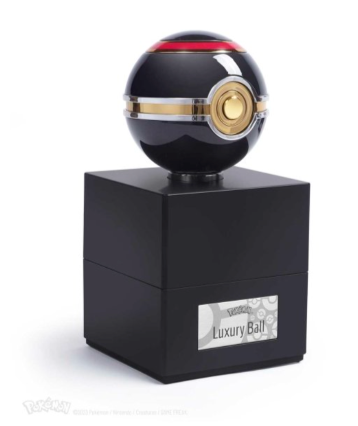 Introduced in the Hoenn region in the Pokémon Ruby and Pokémon Sapphire video games, the Luxury Ball is a unique type of Poké Ball that makes a wild Pokémon quickly grow friendlier after being caught. Now this useful item for Pokémon Trainers can be yours with this premium-quality replica from The Wand Company. Featuring touch- and proximity-sensing technology, the front button illuminates in response to nearby motion and becomes brighter when the Luxury Ball is touched. For an extra touch of interactivity, pressing the button initiates a Pokémon-catching light sequence. This die-cast metal replica comes with an illuminated display case featuring the Pokémon logo, along with a display ring that lets you show off the Luxury Ball on its own.