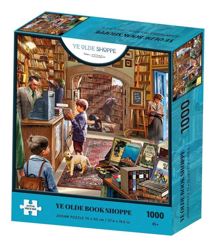 A charming 1000pc Nostalgic jigsaw puzzle featuring Ye Olde Book Shoppe from the talented artist Steve Crisp. This puzzle provides a great complex imAge which is sure to prove popular. Acutal puzzle size 70cm x 50cm, suitable for Age s 6+.