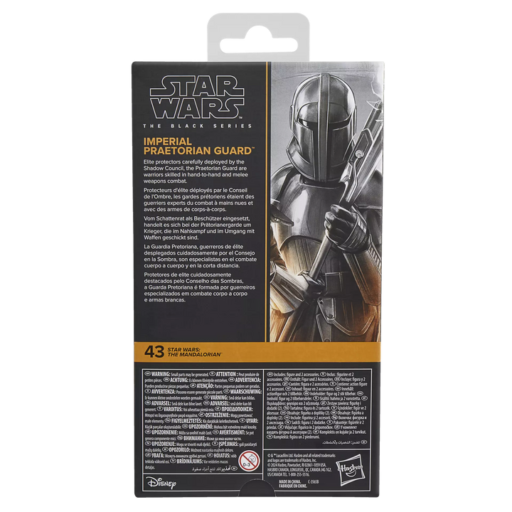 Star Wars The Black Series includes 15 cm action figures, vehicles, and roleplay items from the 40-plus-year legacy of the Star Wars Galaxy, letting fans create galactic scenes with a faithfulness to Star Wars comic books, movies, and series. This Star Wars action figure is detailed to look like an Imperial Praetorian Guard from Star Wars: The Mandalorian. With exquisite features and decoration, The Black Series embodies the quality and realism that Star Wars devotees love. May the Force be with you! (Additional products each sold separately. Subject to availability.)