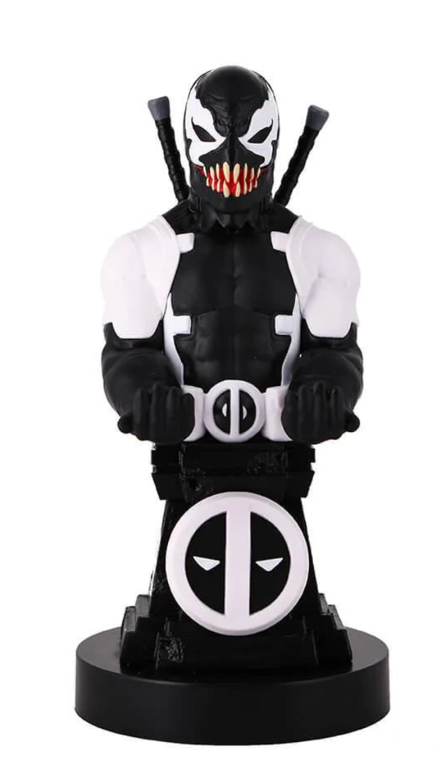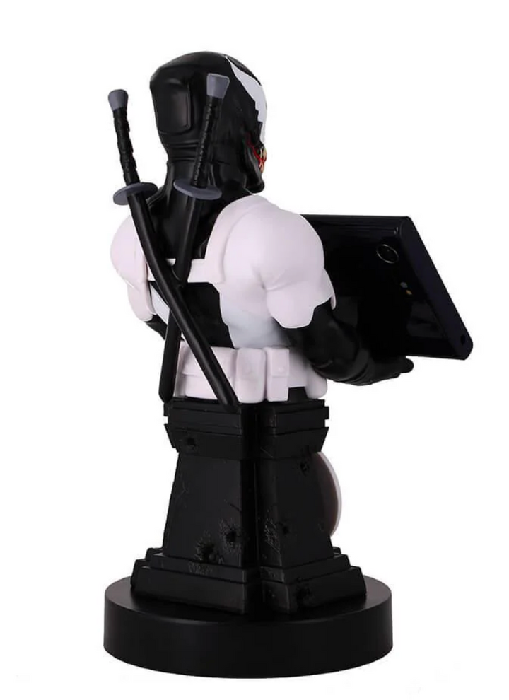From the world of gaming and entertainment, Back in Black Deadpool Venom joins our ever-popular Cable Guys range. Sprouting a terrifying fanged mouth with samurai swords packed round the back, our Deadpool Venom Cable Guy is thirsty for vengeance and is compatible with most types of gaming controller, smart phone, or anything else you can fit into his evil hands. No, YOU'RE scared.