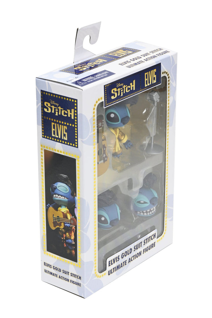 Your action figure ohana won’t be complete without this Ultimate Gold Suit Elvis figure from NECA. Dressed up in an iconic Elvis outfit, this Disney Stitch articulated figure stands over 3 inches tall and is ready to perform all the hits! Accessories include interchangeable heads, hands, hair pieces, and eye plates, plus guitar and microphone stand. Comes in collector-friendly packaging.