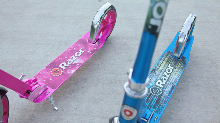 Light up your adventures with the Razor S Spark Scooter in vibrant red. This exciting scooter features bright, light-up urethane wheels and a unique spark bar that releases a captivating shower of sparks with every step, turning every ride into a dazzling display. Crafted with a durable steel frame and deck, it offers reliable strength and stability, while soft foam grips provide comfortable handling.