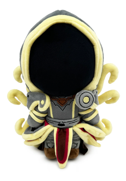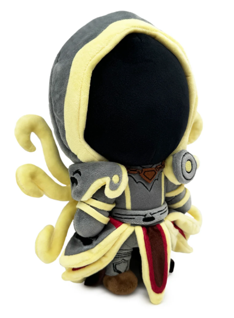 Inarius has descended from the Temple of Firstborn to return to Youtooz in brilliant plush form! At 9 inches tall with a grey hood pulled over his head as its light yellow trim frames a hidden dark face, ghostly tendril wings curl out from the back of his thickly armored torso which is covered in anguished faces as a brown pendant sits on his chest and he wears a brown waist cloth with sharp amored plates that stretch out from either side of intricately patterned legs. This plush is packed to the seams with 100% PP cotton and is made of the softest minky materials, absolutely perfect for cuddling and fighting alongside.