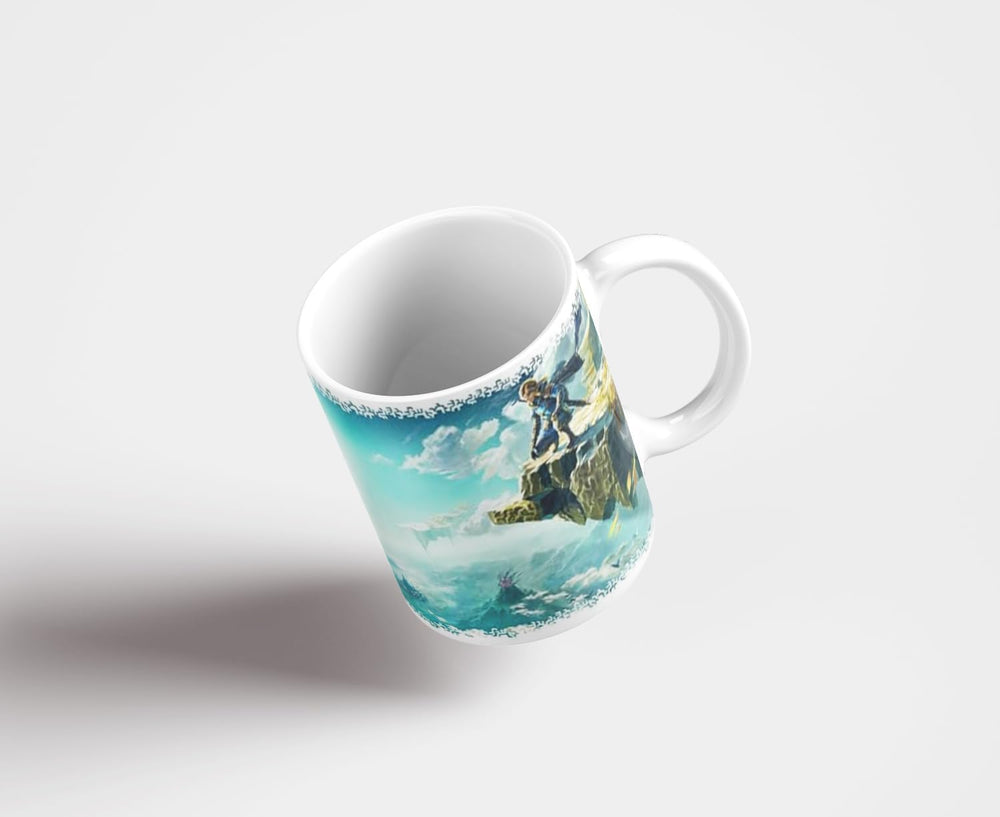 This Legend Of Zelda: Tears Of The Kingdom Mug boasts a beautiful 2D artwork of the Hyrule skyline, making it a must-have for fans of the series. The mug's ceramic construction and generous  size make it both stylish and practical. Bring the adventure of Hyrule everywhere you go!