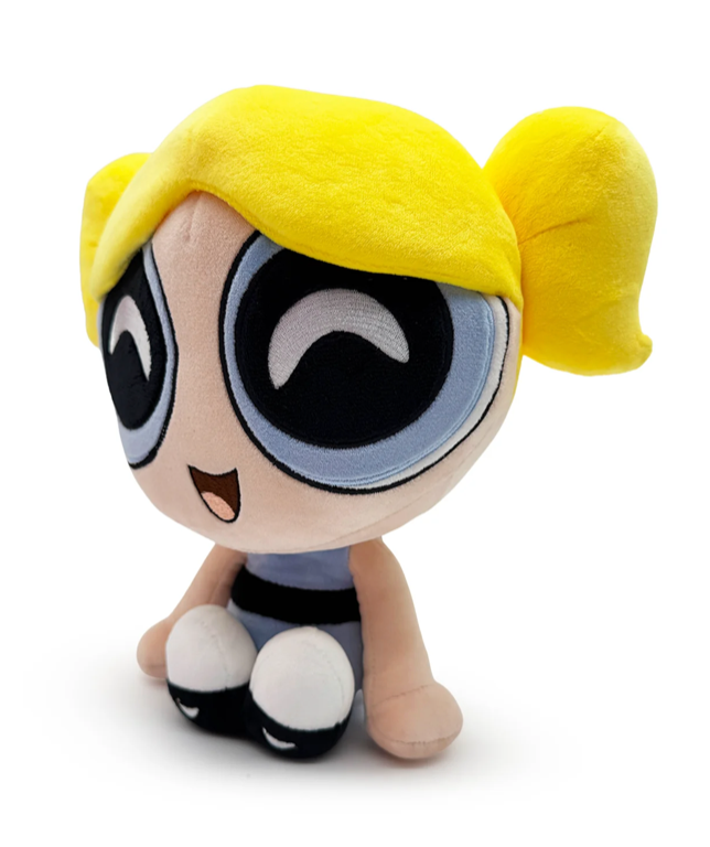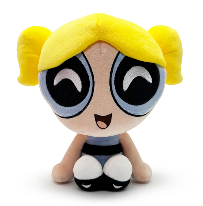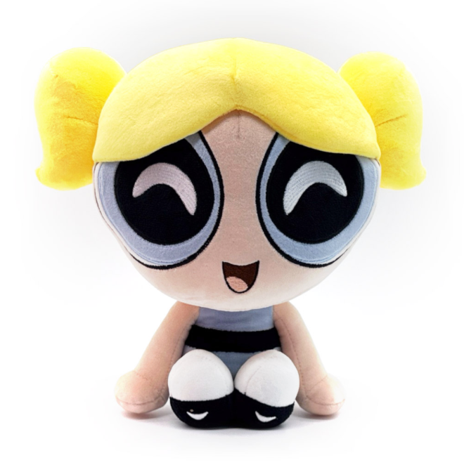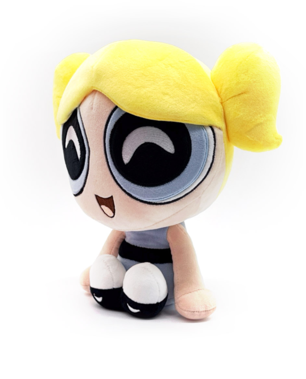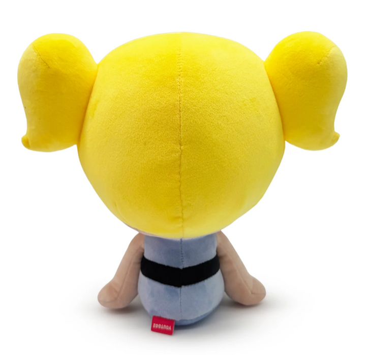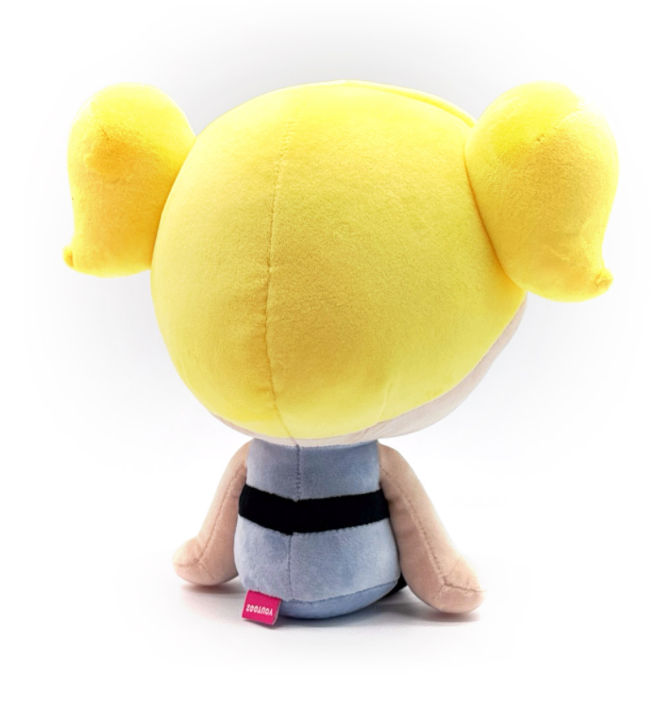 Youtooz is in trouble and the only ones we can count on are The Powerpuff Girls! Sitting at 9 inches tall, Bubbles’s huge blue eyes sit above an excited smile as her bright yellow hair is pulled into small pigtails that poke out from atop her head. With arms hanging loosely at either side as her knees are raised to the front, she wears a sleeveless blue shirt and skirt with a black band around the waist along with white socks and black shoes. This plush is packed to the seams with 100% PP cotton and is made of the softest minky materials, absolutely perfect for cuddling or fighting baddies with!