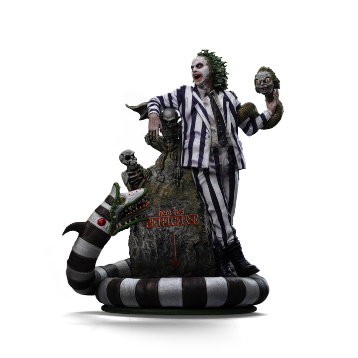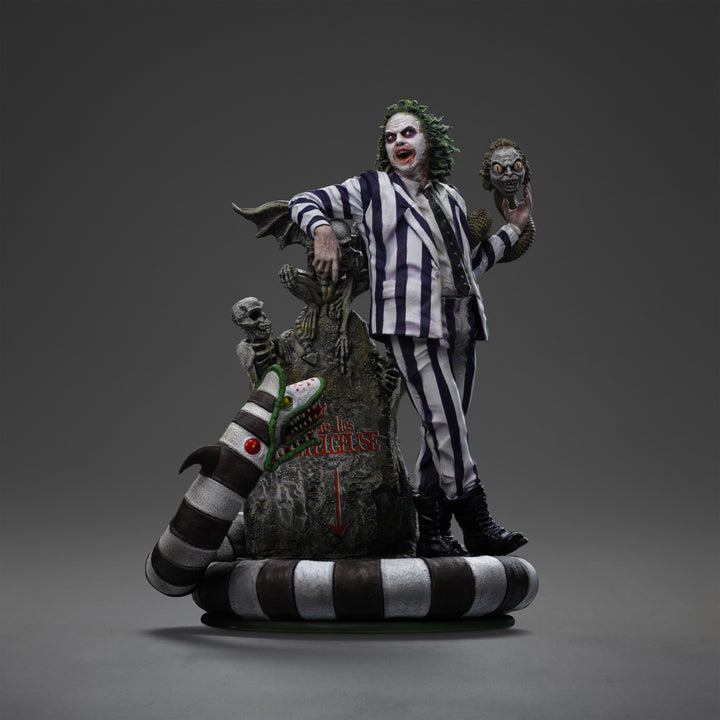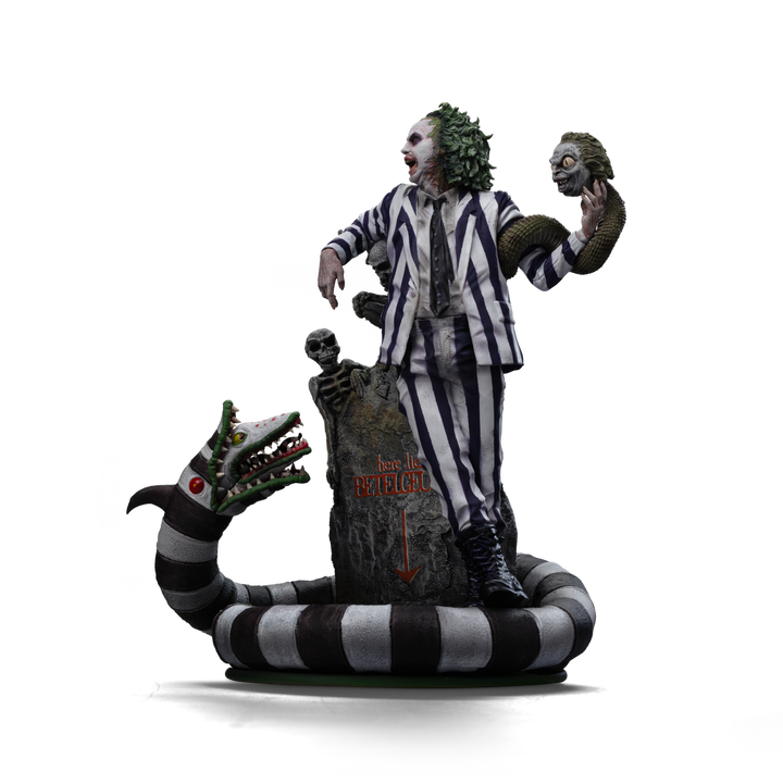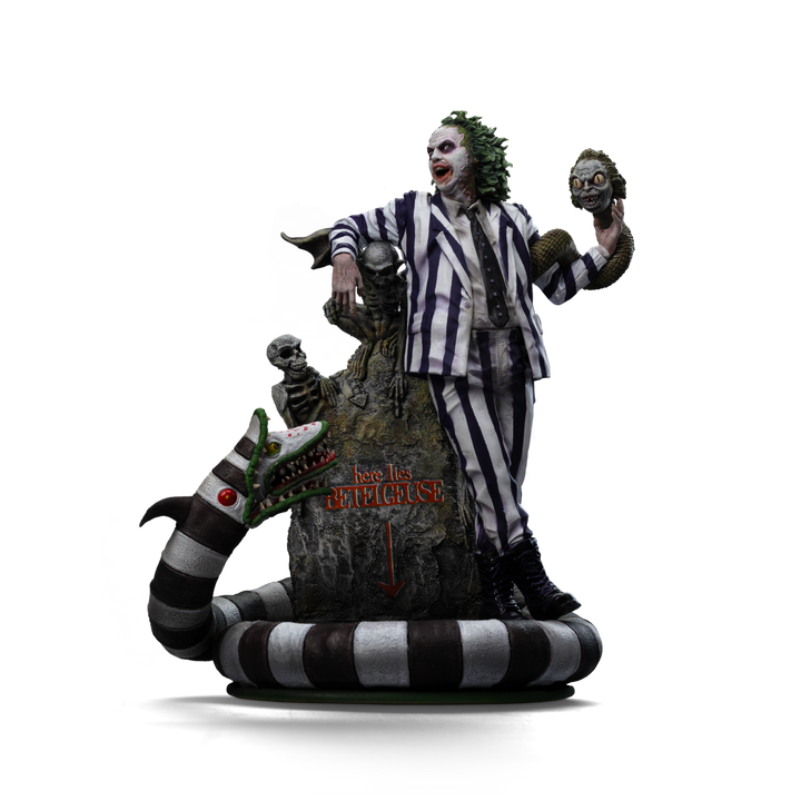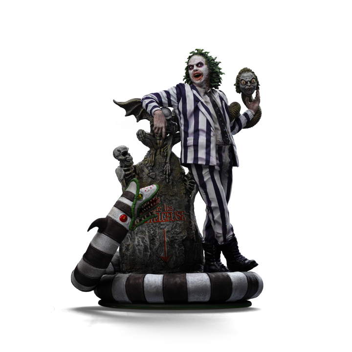 Iron Studios proudly presents the statue of Beetlejuice, from Beetlejuice Beetlejuice, one of Tim Burton's most beloved and iconic creations, which has just received a sequel 36 years after the release of the first film!