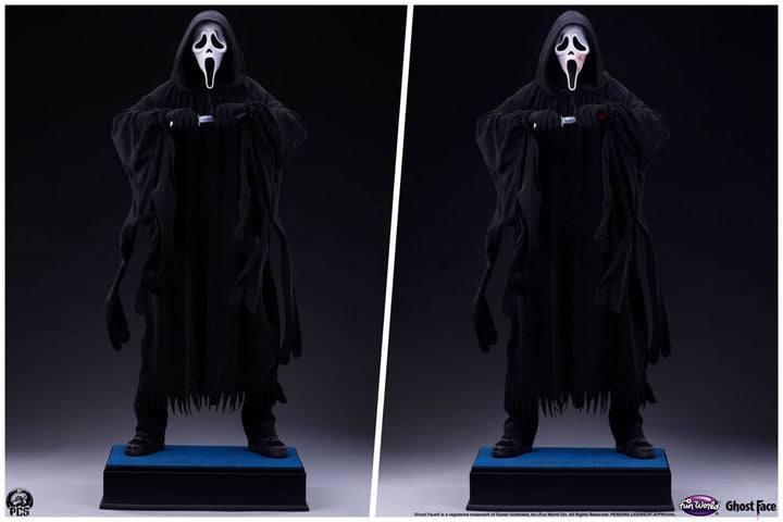 The Ghost Face 1:2 Scale Statue includes several options to allow you to craft your own killer display. The Collector's Edition includes clean and bloody options for the knife as well as clean and bloody options for the signature Ghost Face mask.