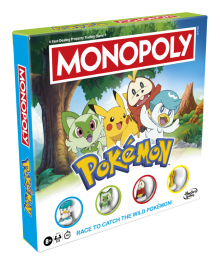 Race to catch the wild Pokémon! The Monopoly Pokémon Edition game combines classic Monopoly gameplay with thrilling Pokémon-catching action. Play as a Pokémon Trainer adventuring through a vast land with a Pokémon partner. In this fun kids game, Properties are vibrant locations and Poké Balls replace money. Players explore locations, catch different types of wild Pokémon to add to their tracker mat, and battle rival Trainers to collect Poké Balls. Be the first Trainer to complete their tracker mat or the last Trainer with Poké Balls to win! This Pokémon game is an engaging kids board game for Family Game Night, and it makes a great Pokémon gift for boys, girls, and kids ages 8 and up who are Pokémon fans and Monopoly board game fans. Includes Gameboard, 4 Plastic Pokémon Tokens, 4 Pokémon Tracker Mats, 16 Locations Cards, 16 Adventure Cards, 16 Challenge Cards, 4 Reference Cards, 1 Numbered Die, 1 Catching Die with Labels, 48 Wild Pokémon Chips, 90 Cardboard Poké Balls, and Game Guide. (c)2025 Pokémon/ Nintendo / Creatures Inc./ GAME FREAK Inc. The Hasbro and Monopoly names and logos, the distinctive design of the gameboard, the four corner squares, the Mr. Monopoly name and character, as well as each of the distinctive elements of the board and playing pieces are trademarks of Hasbro, Inc. for its property trading game and game equipment.