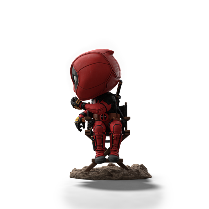 Iron Studios brings a stylized statue of the Chimichangas devourer, inspired by the new movie! Outshining the brightest Light, drawing the Camera to his presence, and determining all the Action! He, the talkative mercenary, the scourge of chimichan gas, the crimson comedian, the regenerating degenerate, Mr. Wilson observes curiously while seated comfortably in his folding director's chair, apparently surprised—but only apparently because almost nothing surprises him. His name is Wilson, Wade Wilson , who once again returns to the big screen, breaking the fourth wall and gaining another must-have stylized collectible version by Iron Studios in this Deadpool MiniCo figure, inspired by the promising third film of the beloved crazy anti-hero, this time in partnership with the most popular and relentless X-Men, wearing his yellow uniform for the first time in a movie.