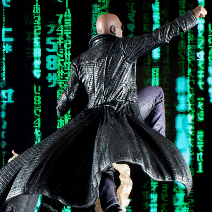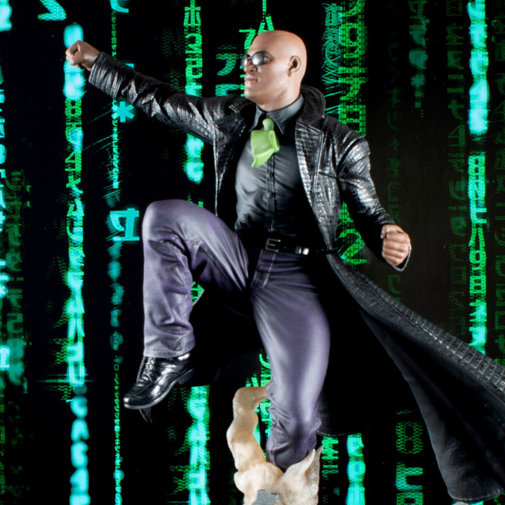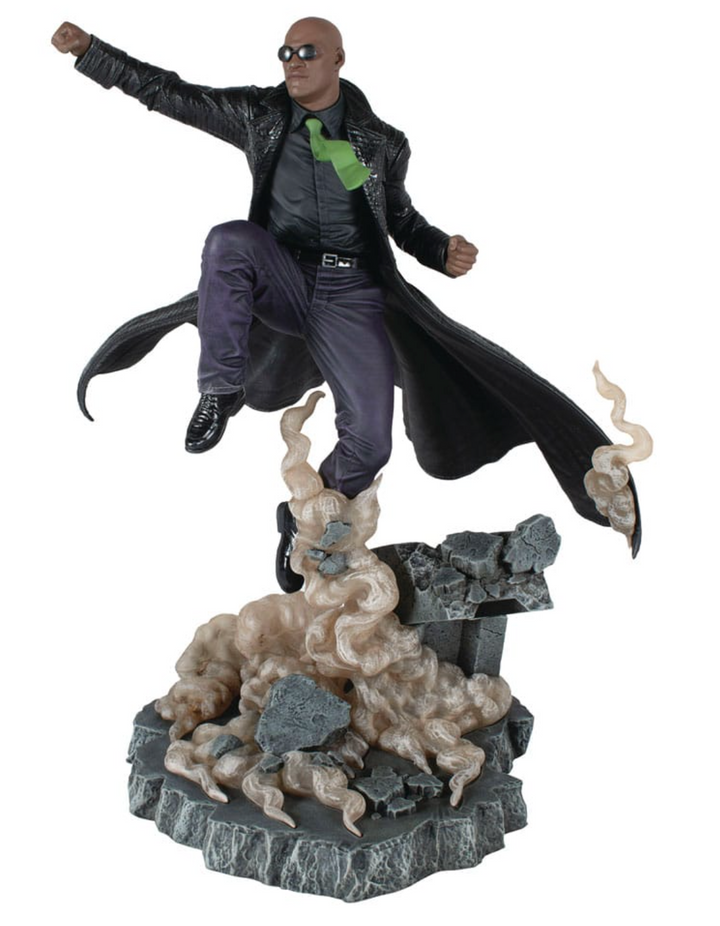 here is no spoon! Morpheus rises to battle The Matrix in this second piece in the Matrix Galley Diorama series! Depicting the resistance fighter leaping from the ground to deliver a deadly attack, this approximately 12 inches sculpture is made of high-quality PVC and features detailed sculpting and paint applications. It comes packaged in a full-color window box