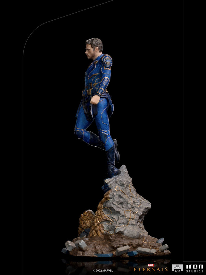 Floating over a pedestal of ancient ruins’ debris, the tactical leader of the immortal heroes’ team flies to combat with his fists clenched and his stern countenance prepared to face the monstrous Deviants. A loyal soldier that is proud of following orders and accomplishing his mission, capable of using his cosmic energy to project powerful beams from his eyes, and capable of flying, soaring, and floating through air and space vacuum at hypersonic speeds; Iron Studios bring the statue “Ikaris BDS - Eternals - Art Scale 1/10”, with the most powerful member of the immortal Eternals.