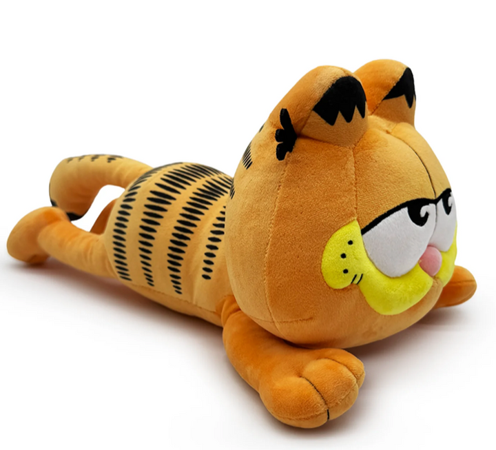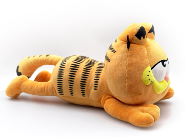 Ahhhh a nice rest after eating a delicious lasagna dinner! Posed on his tummy and stretch out at 16 inches long and weighing 2.7lbs/1.2kgs, Garfield wears a satisfied look on his face as he is ready to just kick it back and relax for the rest of the day. With a sly smile crossing his round face as a pair of half-lidded eyes looking forward, a trio of hairs poke out from either side of his head that has two short ears at its top. This plush is packed to the seams with 100% PP cotton and is made of a mix of normal and sublimated minky material, perfect for cuddling with!