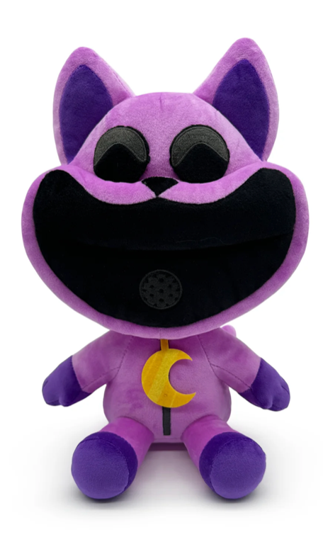 Now this is one cat you don’t want to nap with! Well, maybe a little… You know what, scratch that, CatNap’s Youtooz debut is too adorable not to cuddle and nap with! Sitting at 9 inches tall with their huge open mouth stretching into an unnerving wide smile that reveals a small air tube, dark round eyes adorn their purple face underneath long pointed ears. With a golden yellow crescent moon on their chest as long arms and legs stretch out from a rounded body, their hands and feet are a darker purple and a rounded tail extends from their back. This plush is packed to the seams with 100% PP cotton and is made of the softest minky material, absolutely perfect for cuddling and napping with of course!