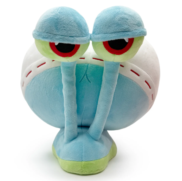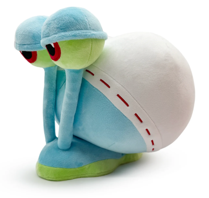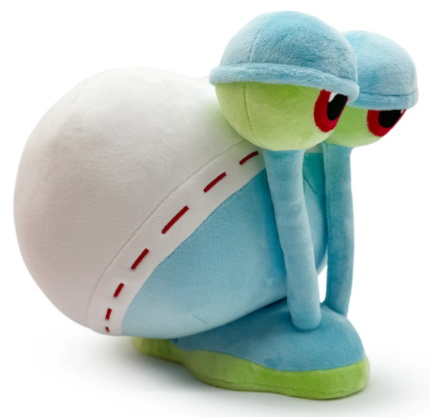 Gary returns to Youtooz with enough cake to open a bakery! Sliding in at 9 inches tall with his green and red eyes sitting atop a pair of long stems and casting a disapproving look with furrowed eyelids, his iconic pink shell is nowhere to be seen, leaving his huge, round, cheeks exposed and only covered in tight white underwear with red marks along their seam. This plush is packed to the seams with 100% PP cotton and is made of the softest minky material, absolutely perfect for cuddling or baking some cake with!