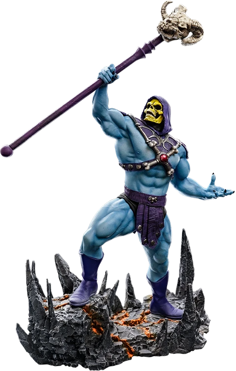 The main villain in the Masters of the Universe franchise, and the most dangerous threat in planet Eternia, Skeletor is an extremely powerful sorcerer that possesses a vast range of dark magic powers, and considerable scientific skills. A member of the Evil Horde and a warlord that trained as a disciple of the evil Hordak, it all indicates that in the past he was Keldor, the lost half-brother of King Randor that disappeared in another dimension and was rescued by Hordak.