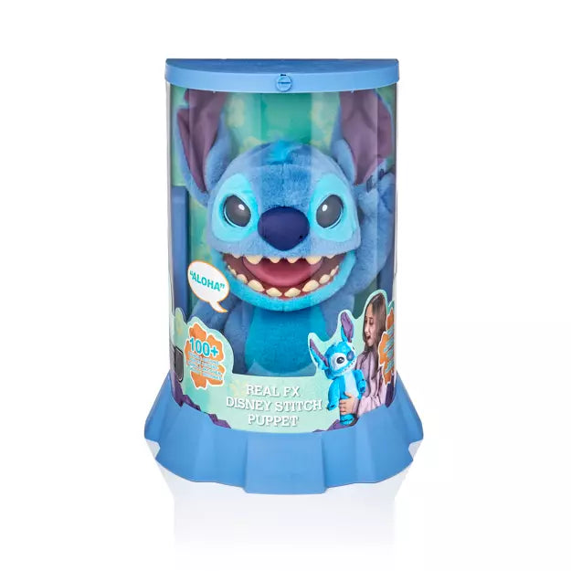 Introducing the Real FX Disney Stitch Puppet Interactive Toy, a delightful animatronic toy standing tall at 45cm, featuring over 100 action and sound combinations to capture Stitch's playful personality! With blinking eyes, a moving mouth, and touch sensors, Stitch responds to your touch and voice, bringing his adorable character to life!