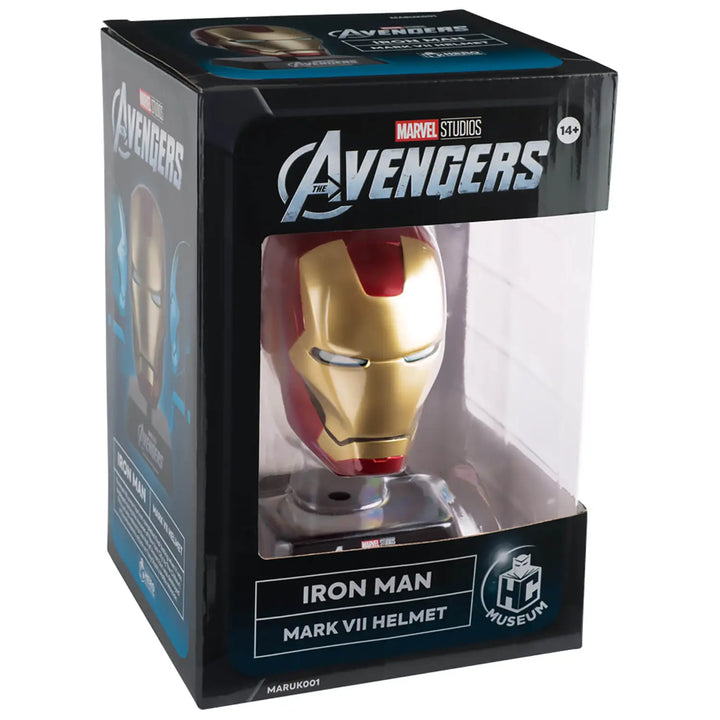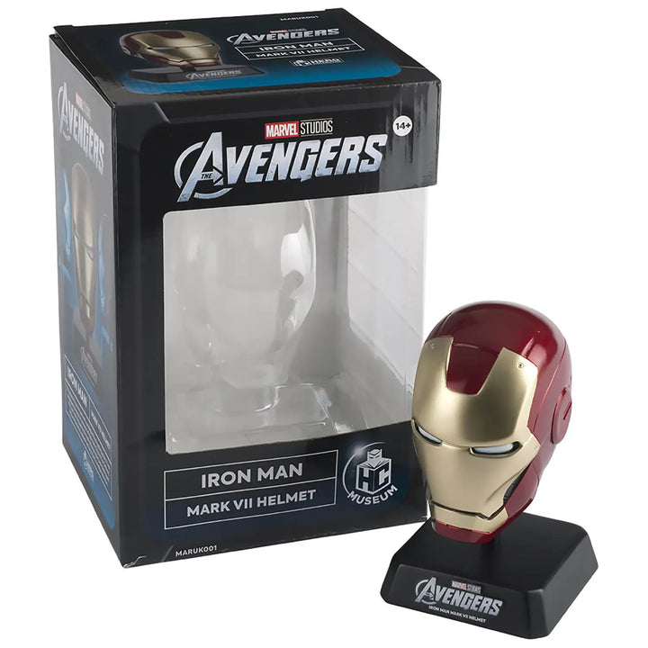 This Iron Man Mark VII helmet is an iconic artifact from the "Avengers" movie, recreated as a highly accurate hand painted resin model that's 16cm tall on it special plinth.