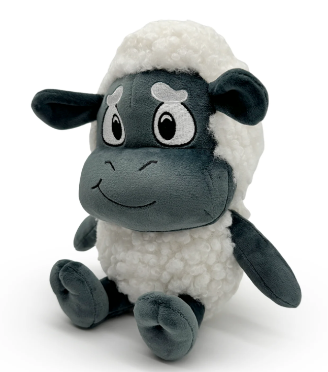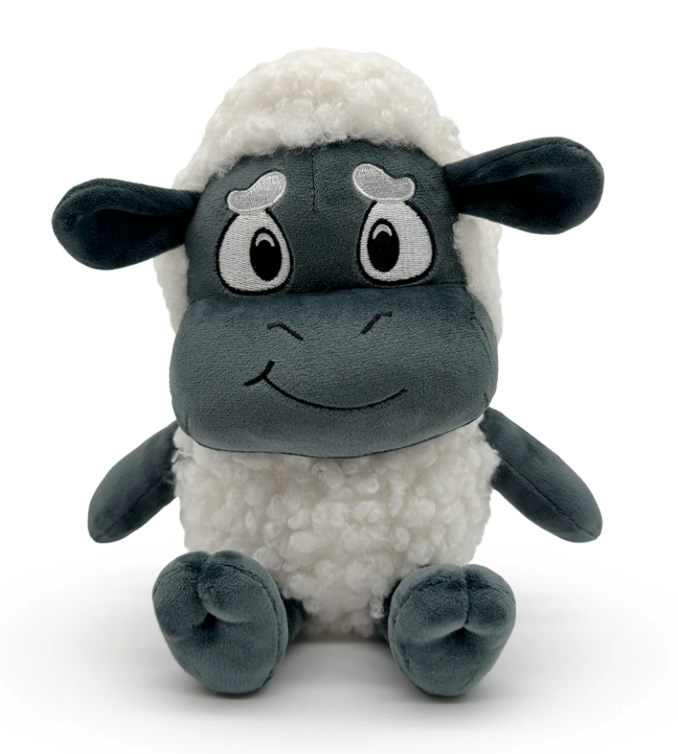 No adventure is complete without a sidekick to adventure with! Wooly is here, maybe a little bit nervous, but ready for the ride! This 9 inch tall plush is seated with his black hooves kicked forward as his body is covered in fluffy white sherpa material to emulate wool! With a concerned smile resting on his dark face and a pair of long ears flopping out the the sides, his white brows are furrowed as a white mullet runs down the back of his head. This plush is packed to the seams with 100% PP cotton and is made of the softest minky material, perfect for cuddling or tagging along with!