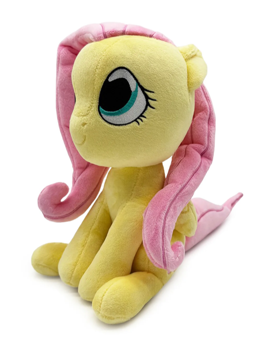 "EEEEEKKkkkk! You startled me!" Fluttershy was too busy checking out all of the cute animals we've made into plushies to notice your arrival! She though they were so cute in fact, that her couldn't help but join her friends as a Youtooz plush! This adorable yellow pony is seated demurely at 9 inches tall with her hind legs folded underneath as the front place their hooves flat on the ground. With her wings folded against her body and slightly covering the pink butterfly cutie marks on her hips, her mane and tail are a bright pink as a long fringe sweeps to the side of her shy face. This plush is packed to the seams with 100% PP cotton and is made of the softest minky material, perfect for cuddling or making new animal friends with!