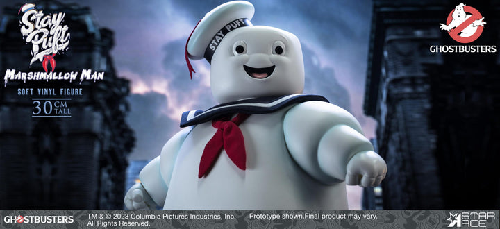 Introducing the new iconic 30cm Soft Vinyl Ghostbusters Stay-Puft Marshmallow Man, brought to you by Star Ace. Immerse yourself in the world of Ghostbusters with this meticulously designed collectible that pays homage to the beloved marshmallow menace.