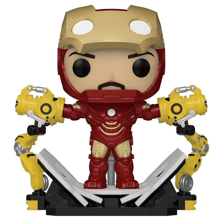 As seen in Iron Man 2, this Pop! figure features Tony in his fourth Iron Man suit, Mark IV, along with the gantry assembly needed to get him in and out, all with familiar Funko flair.