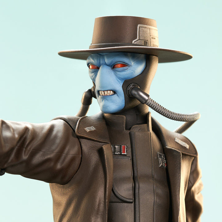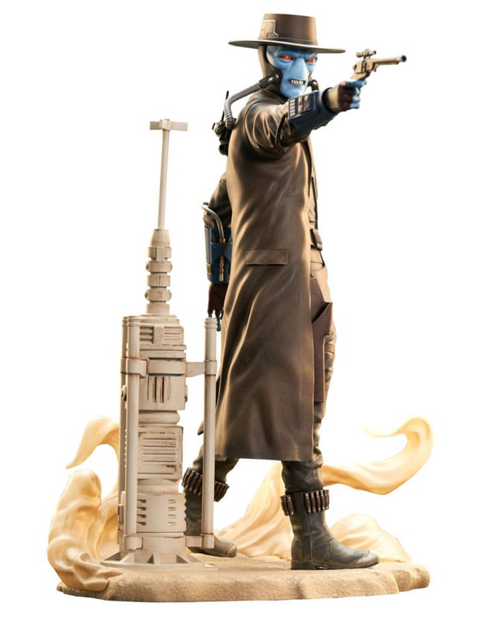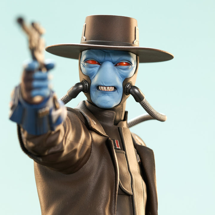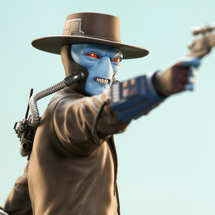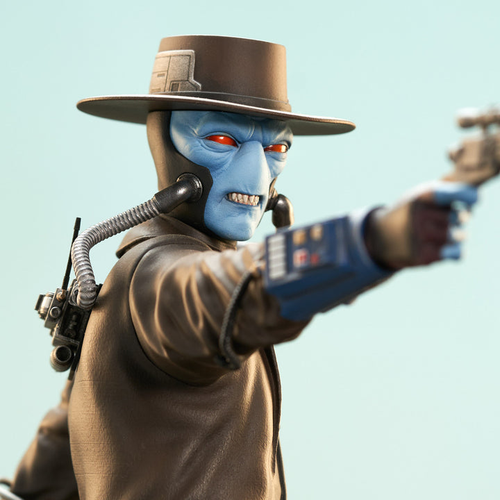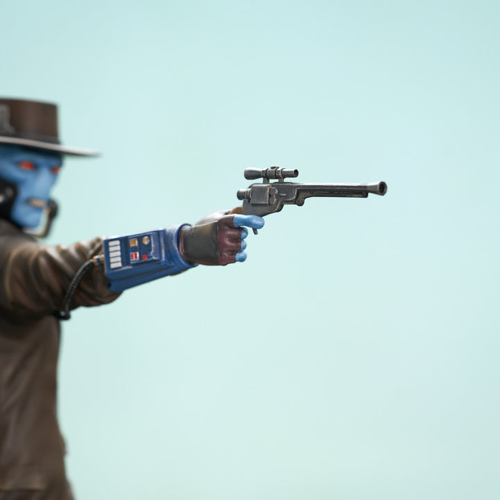 One of the galaxy's deadliest bounty hunters is now a realistic 1/7 scale statue from Gentle Giant Studios Ltd.! Cad Bane peers out from beneath his wide-brimmed hat and takes aim with his blaster in this approximately 11 inch sculpture. Based on his appearance in Star Wars: The Book of Boba Fett, this statue features detailed sculpting and paint applications and is limited to only 3000 pieces. It comes packaged in a full-color window box with a numbered certificate of authenticity.