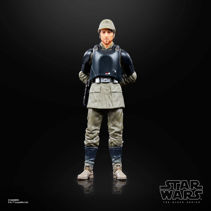The 6-inch-scale Black Series figure is detailed to look like the Cassian Andor (Aldhani Mission) character from Star Wars: Andor, featuring premium detail and multiple points of articulation.