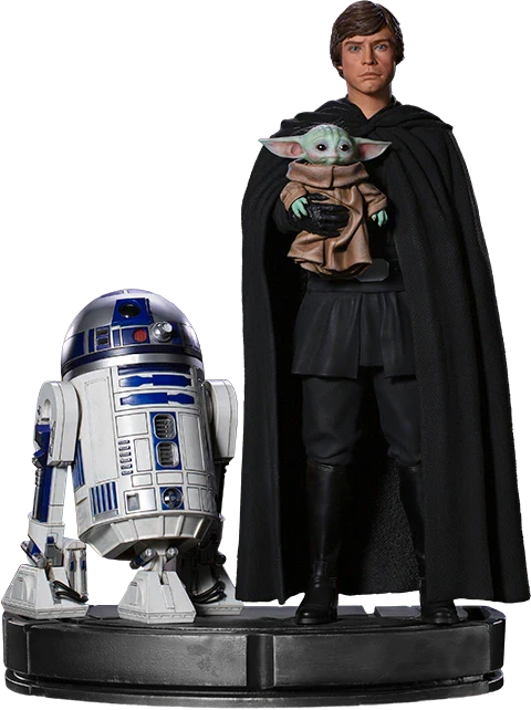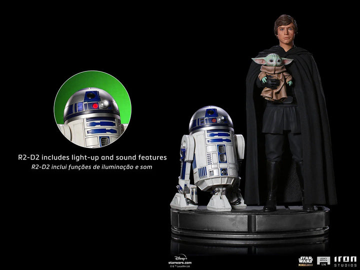 Iron Studios Star Wars The Mandalorian 1/4 Scale Legacy Replica Luke Skywalker, R2-D2, and Grogu Statue
