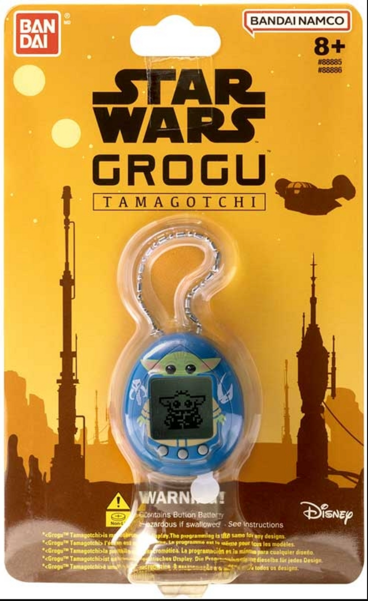 • Re-live the joy of the 90s Tamagotchi Original with this Star Wars Grogu Tamagotchi Nano from Bandai. Raise the mysterious Child from The Mandalorian TV series as your own digital pet to look after and cherish. To keep your Baby Yoda Tamagotchi toy content you must make sure his happy and hungry meters are full. Make sure to feed him regularly to top up his hungry meter and play games with him to increase his happy meter. This Grogu Tamagotchi virtual pet toy has many mini games to play, 2 that are available all of the time, and more that are only available when The Child is in specific forms. As you look after Baby Yoda he will change forms to reference events in the TV show. With 12 forms to uncover, explore different ways to raise Grogu to reveal them all. At different times of the day, other Star Wars characters from The Mandalorian will make appearances. As it comes with its own keychain attachment, you can carry around this fantastic piece of Star Wars merch wherever you go to keep looking after Baby Yoda while you are on the move. Collect different versions of the Tamagotchi Nano to see how many characters you can look after at once from all of your favourite films and TV shows.
