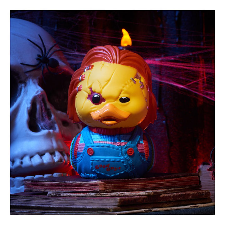 Chucky is a ducky! The infamous killer doll is trying out a new disguise, as an officially licensed Boxed TUBBZ collectible. He looks as creepy as ever and still promises to be your friend until the end, who needs a friend like this? The detail is perfect, blue overalls, stripey top and one eye has gone red, you know what that means! A must for horror fans.