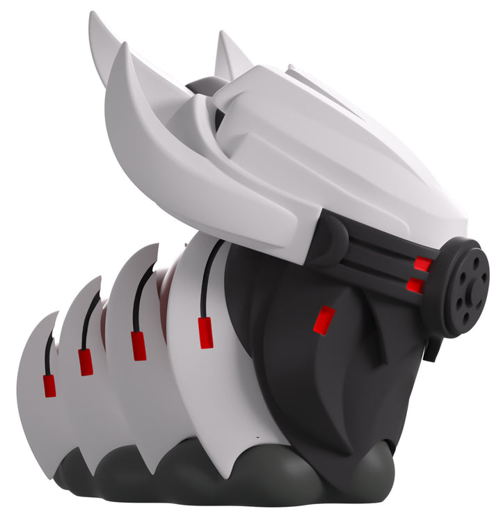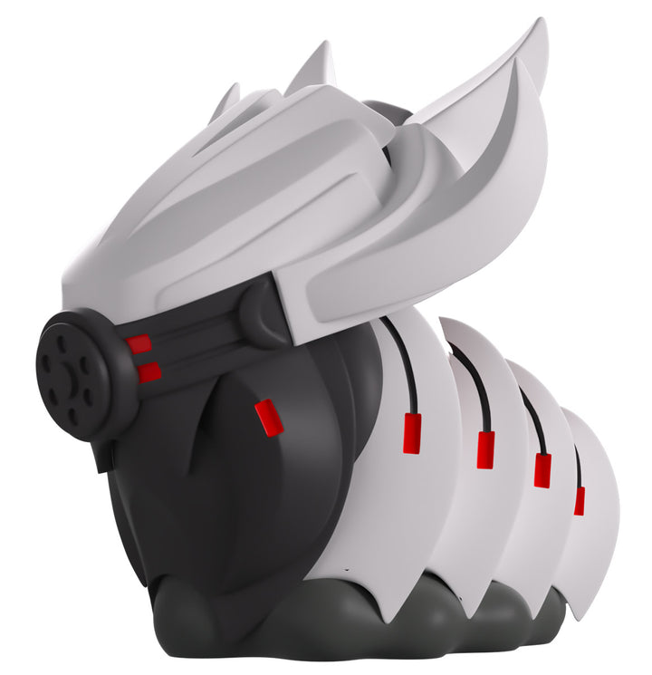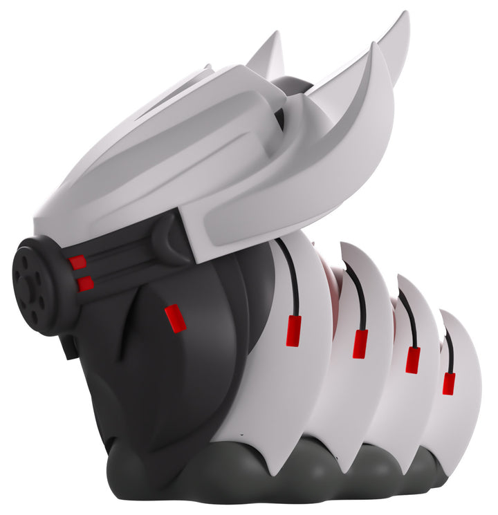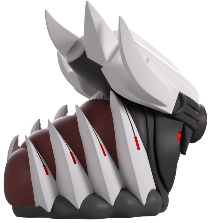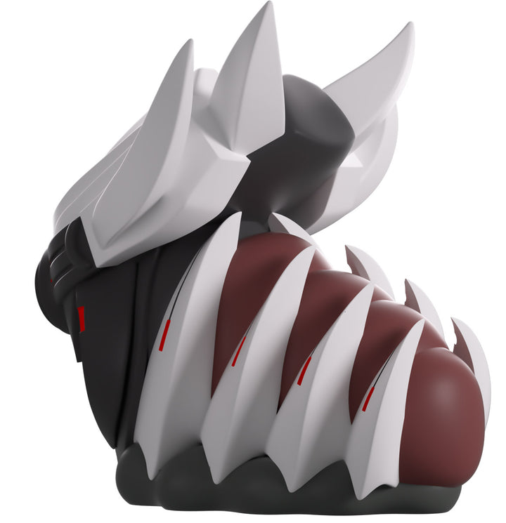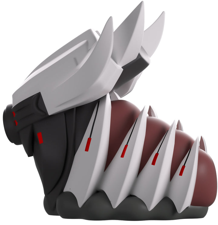 Youtooz has deployed a mechanitor and summoned a War Queen for their Youtooz debut! At 3.5 inches tall with a dark grey circle at the front of their face and two sets of bright red pupils shining through a visor, a pair of thick insect-like mandibles stretch downward as their white head sweeps back into four long points. With the sharp white spines of their carapace reaching over a deep brown-red sectioned body, they’re carried along by a curving grey undercarriage. The exterior of her packaging has her centered in a brown field that’s scattered with rocks and has a stone path running through the center. While the interior sees a ringed planet amidst the star-speckled darkness of space, this then continues onto the protective sleeve as her figure can be seen through the large clear window at the packaging’s front. This collectible was designed in collaboration with community member @therealracckun and ships in a matte, embossed, protective outer sleeve and a custom-sized plastic protector for maximum protection during shipping.