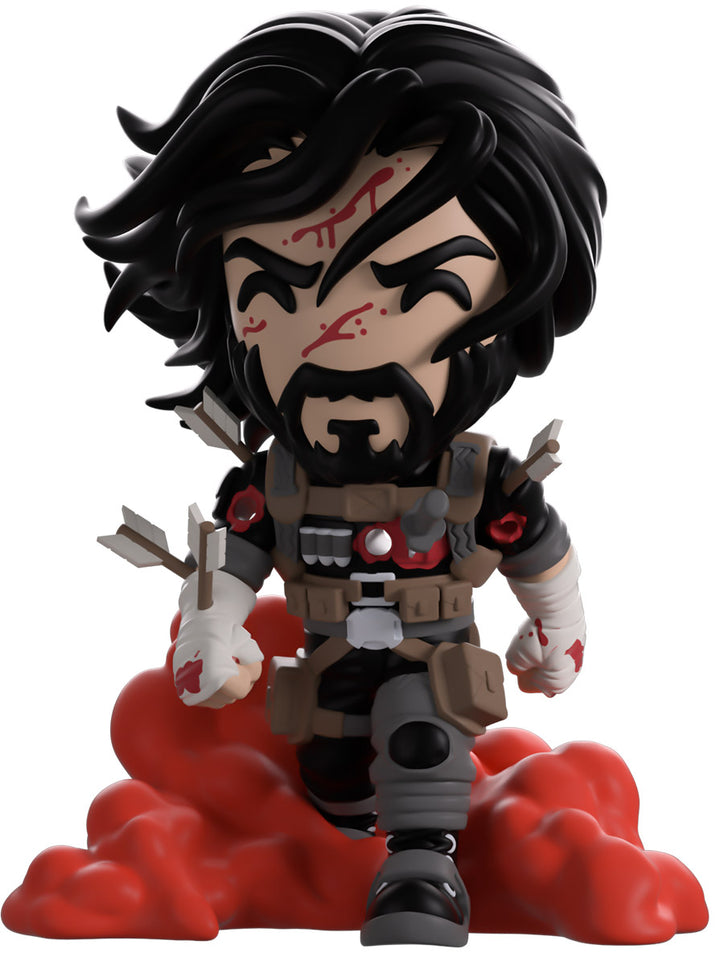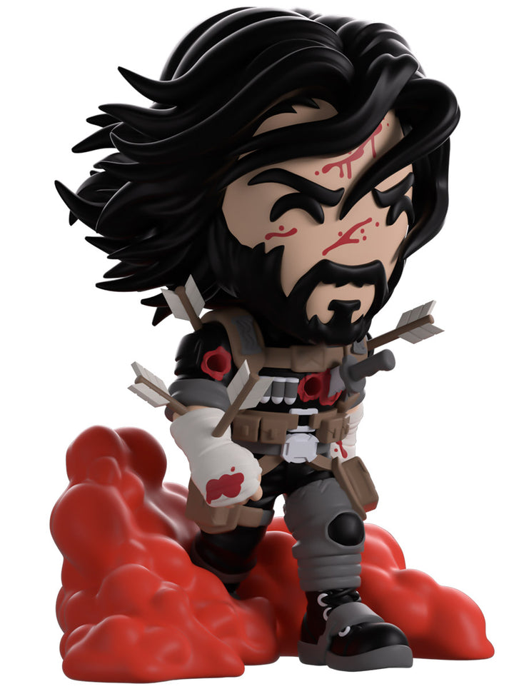 Battling his way through the ages has landed Berzerker at Youtooz for his most formidable challenge yet, becoming a collectible figure! Walking through a billowing cloud of deep red smoke to stand at 4.6 inches tall, his head is lowered in determination as locks of wild black hair blow across a blood-smeared, bearded, face. Wearing bloody bandages wrapped around his fists and a black outfit covered in brown holsters, pouches and grey armor, a series of arrows and a dagger are embedded into his body which is riddled with holes that have been blown straight through him. The exterior of his packaging shows him walking through a run-down warehouse filled with red smoke. While, the interior is a close-up of his red silhouette on a black background which continues onto the protective sleeve as his can be seen through the large clear window at the packaging’s front. This collectible ships in a matte, embossed, protective outer sleeve and a custom-sized plastic protector for maximum protection during shipping.