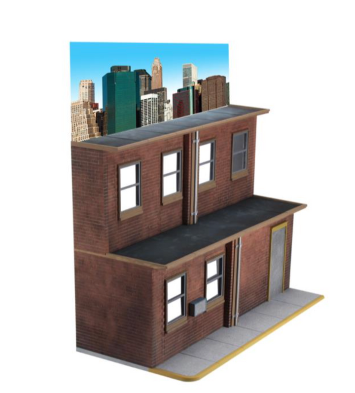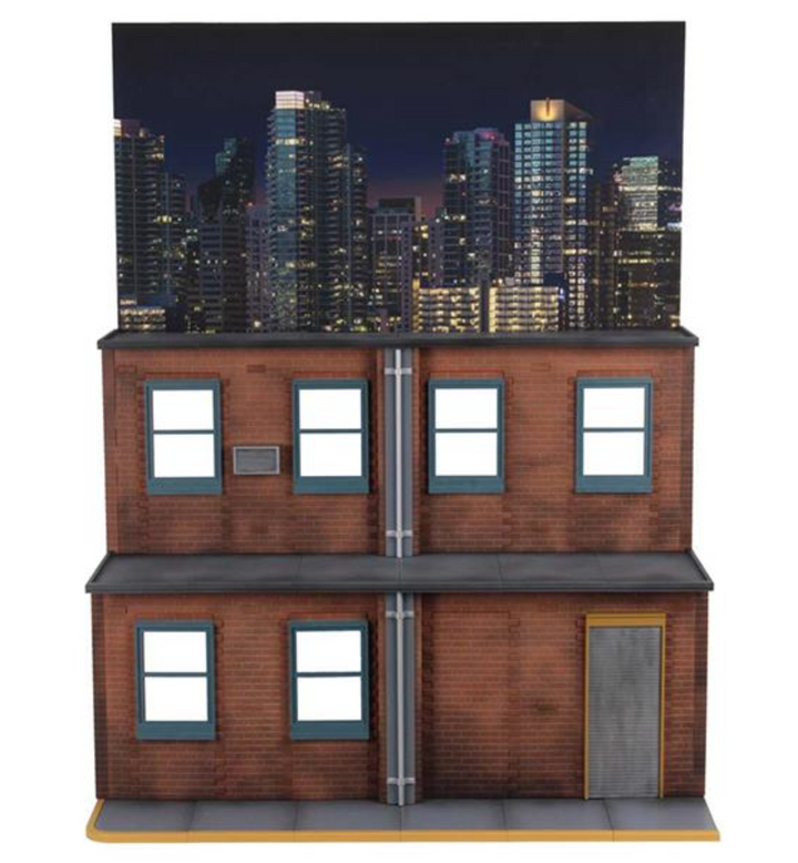 Its three-tiered structure offers versatile display options, allowing you to create dynamic scenes from television shows, movies, and more. Featuring clear window panels for added realism and a full-color cardboard backdrop that reverses between daytime and nighttime settings, this diorama brings your displays to life.