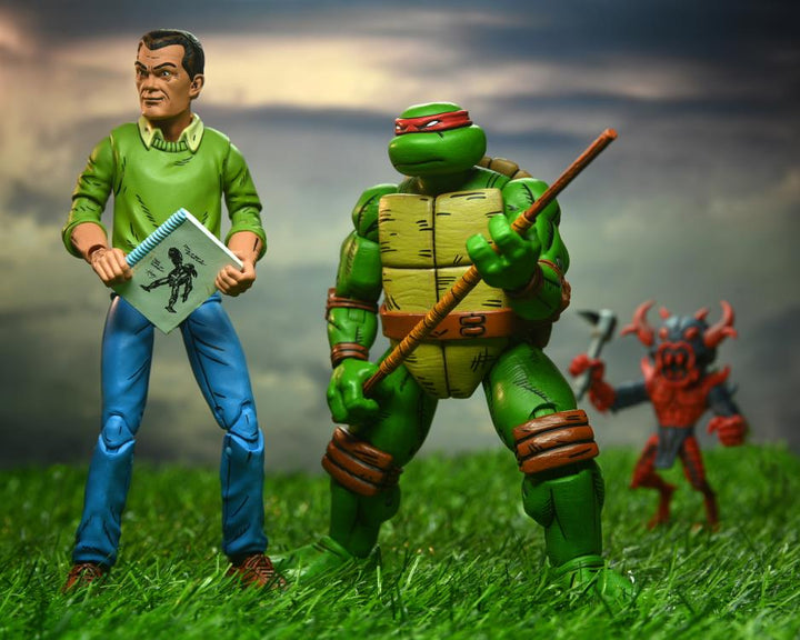 Here comes an action figure first based on the original Eastman & Laird Teenage Mutant Ninja Turtles comic books from Mirage Studios! In a one-issue, micro-series comic published in May 1986, Donatello encounters a reclusive artist named Kirby, who can bring his sketches to life with the power of a magic crystal-enhanced pencil. Celebrate Donatello's fan-favorite solo adventure with this 7-inch scale Kirby action figure, complete with interchangeable hands and a variety of issue-specific accessories. Comes in window box packaging featuring original artwork by Kevin Eastman. Special thanks to Kevin Eastman and the Kirby Estate!